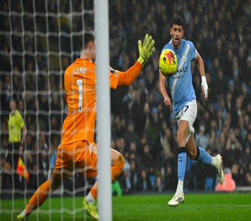 第22分鐘,曼城前場高位逼搶造成富勒姆的出球被搶斷,奧萊利的遠射還是操之過急,放了高射炮。