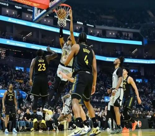 首節(jié)開打,穆迪和梅爾頓連中三分,勇士開局6-2領先馬刺。文班亞馬突破單手劈扣后再轉身后仰跳投命中,一人連拿4分回應。追夢-格林里突外投連拿5分,沒有庫里后也是能自主進攻了,感受到危機了?桑托斯罰球線附近跳投再得手,勇士16-8領先8分,打停馬刺。哈珀急停三分穩(wěn)穩(wěn)命中,及時止血,波杰姆斯基反擊急停跳投三分命中后再投進中距離,一人連拿5分,勇士再領先到9分。福克斯突破得手后再連中三分,一人連拿8分帶隊將分差縮小至7分。小佩頓底角三分穩(wěn)穩(wěn)再中,勇士首節(jié)38-31領先馬刺。