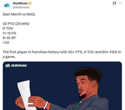 憑借這樣的表現,梅里爾成為騎士隊史首位以至少90%命中率,砍下30+同時沒有出現任何失誤的球員。