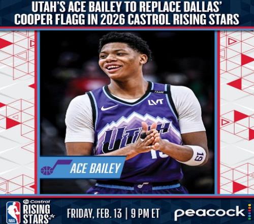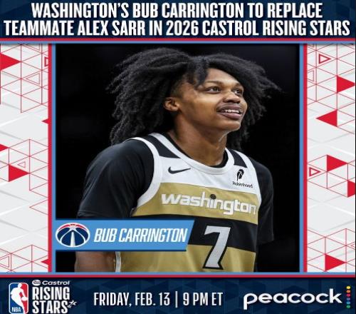 在弗拉格與薩爾因傷缺席全明星新秀挑戰賽情況下,他們的頂替者出爐,分別是爵士新科5號秀貝利,他本賽季場均得到11.6分3.8 籃板,以及奇才2024年14號秀卡林頓,他本賽季場均得到10.2分3.5籃板4.6助攻。