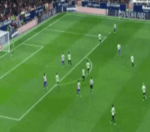 第14分鐘,格子的神勇狀態,靈巧的身姿展現出來。他得球后在禁區內換到左腳射門,低射,入網。馬競2-0領先!