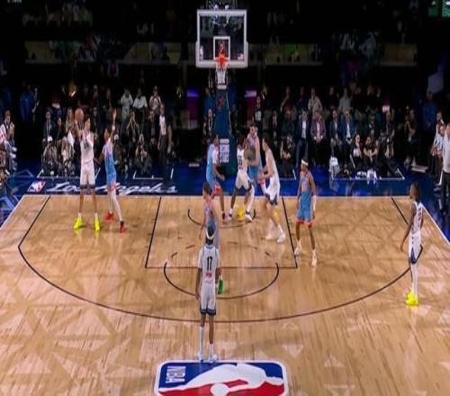 楊瀚森也不怯場,看得出來他來新秀賽就是享受比賽的,沒有常規賽面臨的那些上場時間壓力,楊瀚森第一次出手就命中了三分,對位的還是克林根。