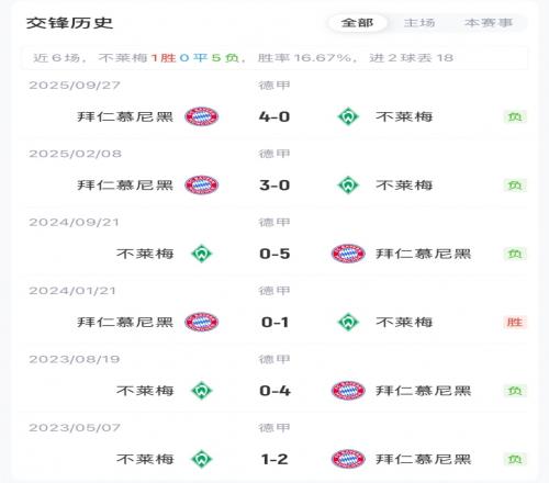 目前拜仁21輪積54分領跑德甲積分榜,領先身后先賽的多特3分;不萊梅19分排名第16,正為保級奮戰。兩隊賽季首回合交鋒中,拜仁主場4-0完勝。