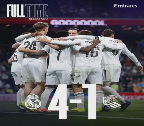 4-1!西甲第24輪,皇馬在伯納烏輕松拿下皇家社會,先賽一場以60分登頂,豪取聯賽8連勝。阿諾德的助攻、巴爾韋德的遠射、維尼修斯的梅開二度,一切看起來都那么完美。