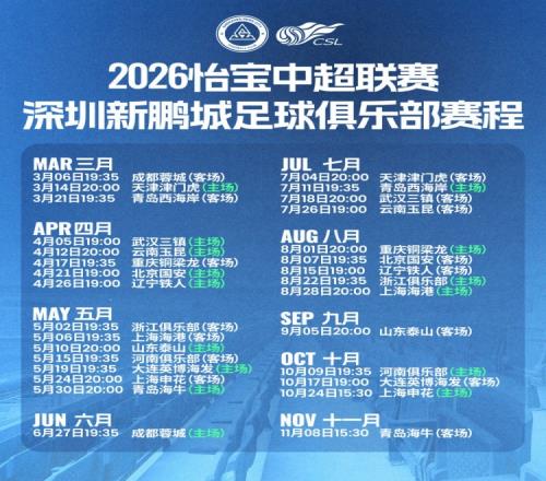 2026中超聯(lián)賽深圳新鵬城足球俱樂部賽程出爐!