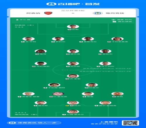 足總杯阿森納vs維岡競技首發:熱蘇斯、埃澤先發,斯凱利中場