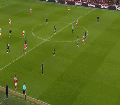 第23分鐘,馬杜埃凱右路突破斜塞,薩卡下底倒三角傳中,熱蘇斯射門踢疵,不過杰克-亨特自擺烏龍,3-0!