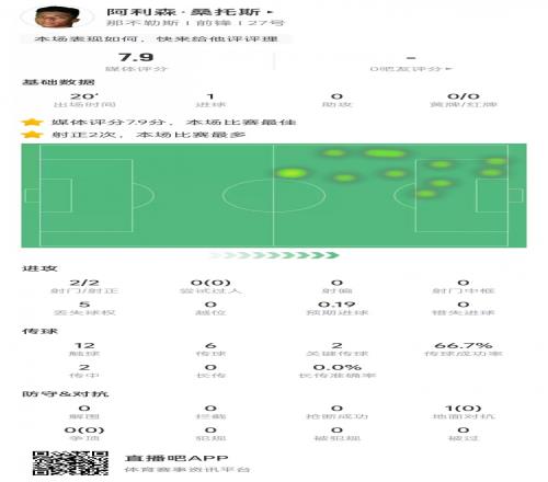 阿利森·桑托斯本場比賽數(shù)據(jù):