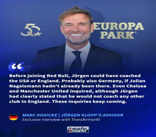 “甚至切爾西和曼聯都來詢問過他的情況。盡管尤爾根(克洛普)已經明確表示過他不會再執教英格蘭的任何其他俱樂部,這些詢問還是不斷而來。”