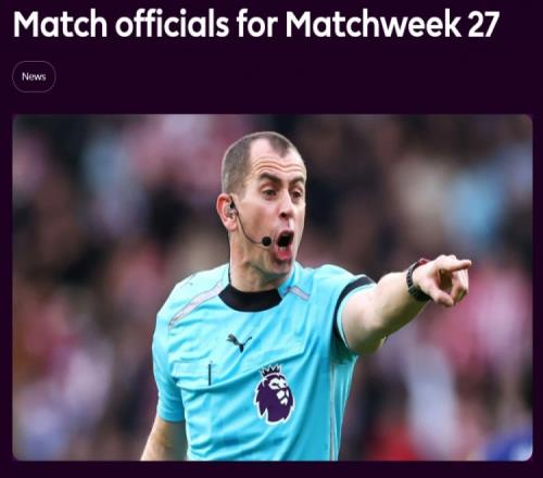 英超第27輪各場(chǎng)裁判: