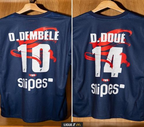 上鏡的是登貝萊和杜埃的球衣,巴黎官推配文:“巴黎圣日耳曼的農歷新年球衣,每處細節都蘊含力量?!?/p>