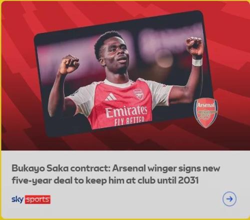 新合同為期5年,很快官宣,正如SM報道的那樣。薩卡一直被視為阿森納的非賣品,他是槍手未來的關鍵。