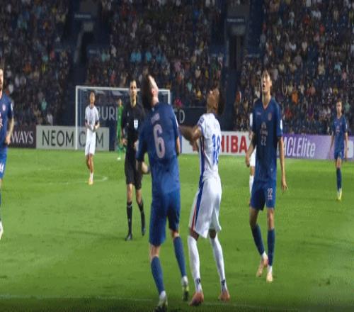 第22分鐘,武里南聯(lián)又抓住了角球進(jìn)攻,右側(cè)角球開禁區(qū)之后,朱辰杰頭球解圍,隨后素帕那一記精彩抽射破門,申花0-2!