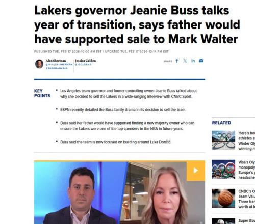 面對(duì)這一話題引爆社媒,湖人小老板、總裁珍妮巴斯在接受CNBC采訪時(shí),也公開給出回應(yīng)。