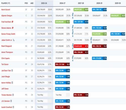 火箭隊(duì)在今夏交易得到了凱文-杜蘭特、卡佩拉,簽下了自由球員芬尼-史密斯,除此之外還續(xù)約了杰夫-格林、亞當(dāng)斯、范弗利特、泰特、霍勒迪等多人,這讓火箭隊(duì)成為了奪冠熱門之一,只可惜范弗利特、亞當(dāng)斯早早賽季報(bào)銷。