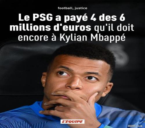 據《隊報》的最新報道,巴黎圣日耳曼已經支付了姆巴佩約600萬歐元欠薪中的400萬歐元,此外他們希望通過協商取消另一項懲罰:在官網首頁公示整份判決書一個月。