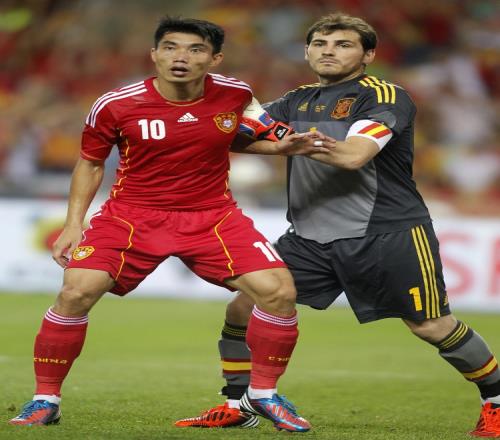 2012年6月4日歐洲杯前夕,上半場比賽,鄭智錯失單刀,下半場第84分鐘,伊涅斯塔助攻席爾瓦完成絕殺。當時國足的主帥還是卡馬喬。