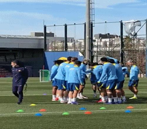巴薩的訓(xùn)練場上,隊(duì)友們用傳統(tǒng)的“排隊(duì)拍打”祝賀加維復(fù)出。