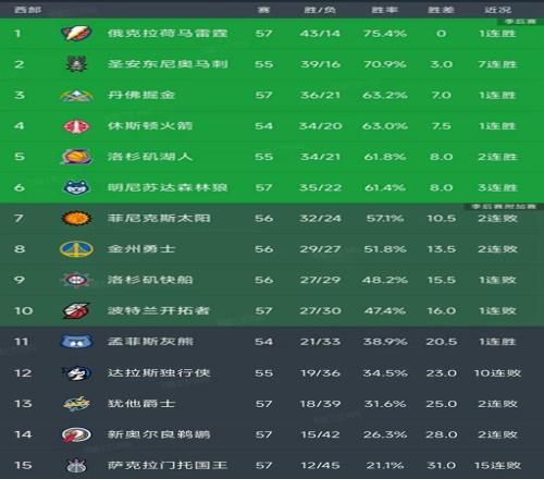 北京時間2月21日,今日的NBA常規賽結束了所有比賽,我們看看西部最新排名變動,主要的信息如下:雷霆105-86籃網,掘金157-103大勝開拓者,湖人125-122快船,森林狼122-111送獨行俠10連敗,鵜鶘118-138慘敗雄鹿,灰熊123-114戰勝爵士!