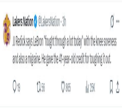 賽后記者詢問勒布朗傷病的話題,他回復:膝蓋的傷病是昨天訓練時發生的,我在一次扣籃落地后變得酸痛且緊繃,偏頭疼的情況時有發生,但我是一名球員,我必須做出貢獻盡我可能為球隊帶來效率。
