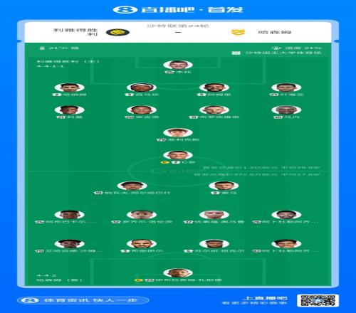 利雅得勝利首發(fā):24-本托、2-哈納姆、3-西馬坎、5-阿姆里、23-葉海亞、11-布羅佐維奇、20-安吉洛、21-科曼、10-馬內(nèi)、79-菲利克斯、7-C羅