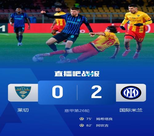 體育播報2月22日宣 北京時間2月22日凌晨1時整,2025-26賽季意甲第26輪在維亞·德爾·馬雷球場展開角逐,國際米蘭客場對陣萊切。上半場恩里克遭門線解圍,下半場迪馬爾科進球無效后送角球助攻,姆希塔良替補破門,阿坎吉頭球擴大比分。最終國米客場2-0戰(zhàn)勝萊切,國米取得聯(lián)賽7連勝+14輪不敗,先賽積64分繼續(xù)領跑,領先第2名米蘭10分。