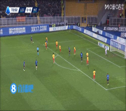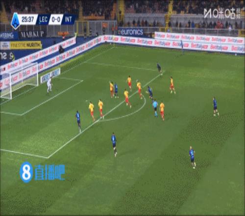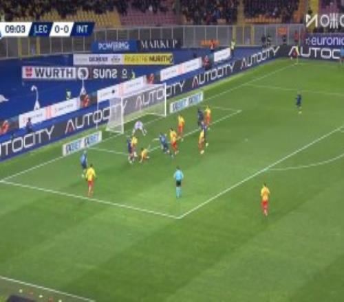 國米7分鐘2球!阿坎吉頭球破門,迪馬爾科角球助攻!第82分鐘,迪馬爾科主罰角球傳中,阿坎吉高高躍起搶點頭球破門,萊切0-2國米!↓