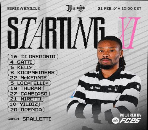 尤文首發:16-迪格雷戈里奧、4-加蒂、6-凱利、27-坎比亞索、5-洛卡特利、8-庫普梅納斯、19-凱夫倫·圖拉姆、22-麥肯尼、21-米雷蒂、10-伊爾迪茲、20-奧蓬達