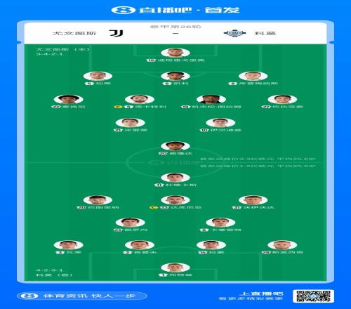 體育播報02月21日宣 22點意甲第26輪,尤文圖斯主場迎戰科莫。本場比賽尤文賽季第四球衣迎來首秀,科莫中場帕斯累積黃牌停賽。