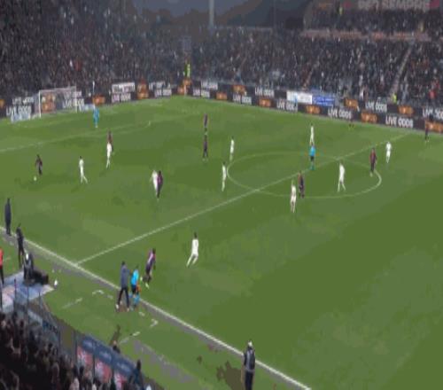 第15分鐘,差一點,多塞納頭球擊中立柱
