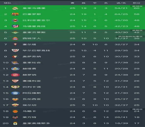 北京時間2月22日,西甲第25輪率先結束了5場比賽,我們看看最新積分榜變動,主要的信息是:皇馬1-2爆冷不敵奧薩蘇納、馬競4-2大勝西班牙人、畢爾巴鄂競技2-1埃爾切、皇家社會3-3皇家奧維耶多,皇家貝蒂斯1-1巴列卡諾。