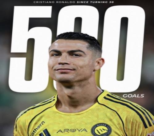 本輪沙特聯,C羅雙響,并解鎖了一項特別的紀錄:在30歲后打進500個進球。