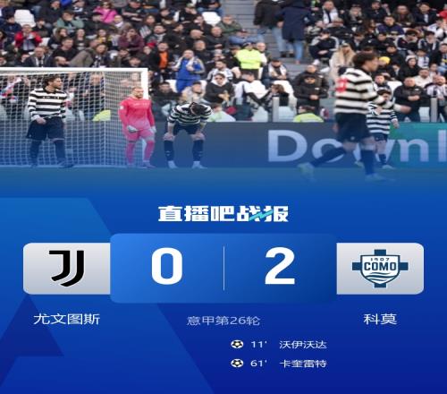 尤文0-2科莫三輪不勝,先賽距前四1分。