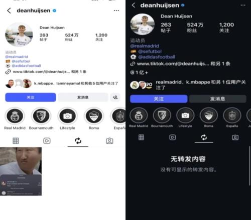 此前皇馬后衛赫伊森的ins賬號轉發了一條多圖動態,該動態的首張圖片有明顯的辱華意味。而目前赫伊森社媒的主頁最新情況,該內容已經被刪除。