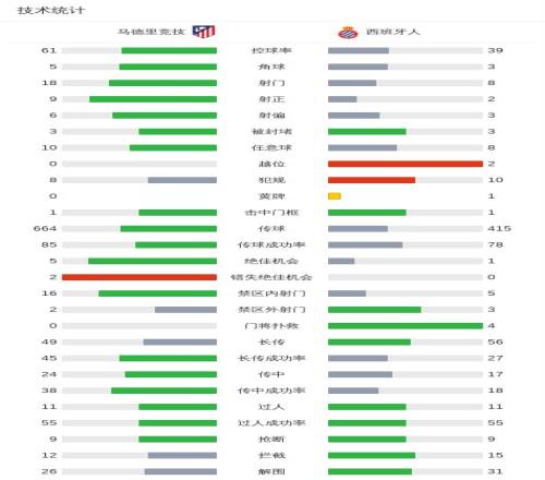 北京時間2月22日西班牙足球甲級聯賽 聯賽 第25輪,馬德里競技主場對陣西班牙人。上半場,卡雷拉斯破門,瑟洛特扳平比分。下半場,巴埃納助攻,小西蒙尼幫助馬競反超比分。魯杰里隨后送出兩次助攻,盧克曼和瑟洛特相繼破門。埃杜遠射得分,為客隊扳回一城。全場比賽結束,馬競4-2擊敗西班牙人。