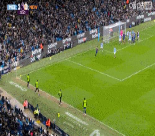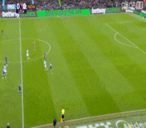 第22分鐘,紐卡獲得前場角球機會,霍爾禁區外迎球抽射,皮球打在努里身上發生變線入網,1-1!一記精彩的遠射為客隊扳平比分。