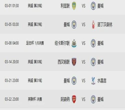 曼城未來6輪對(duì)手:利茲聯(lián)(15)、諾丁漢森林(17)、西漢姆(18)、水晶宮(14)、切爾西(4)、阿森納(1)。