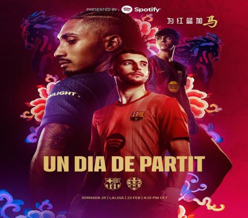 巴薩賽前海報(bào)以農(nóng)歷馬年春節(jié)為主題,并用中文寫著“為紅藍(lán)加馬”。在海報(bào)上,霍安-加西亞、拉菲尼亞、貝爾納爾上鏡。