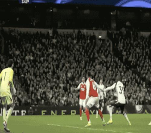 第36分鐘,薩卡形成單刀,維卡里奧出擊,用身體將球擋出。