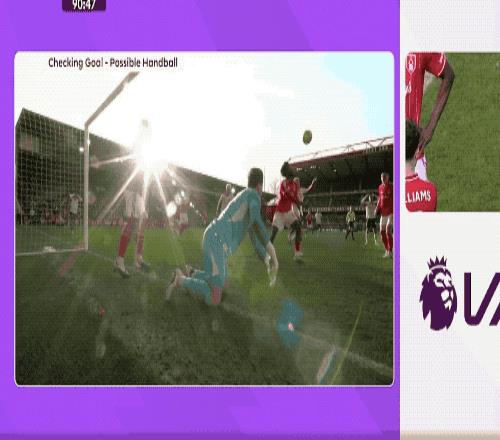 第90分鐘,恩古莫哈傳中,埃基蒂克的頭球被奧爾特加奮力撲出,埃納大腳解圍,麥卡利斯特背身,皮球打在他的手臂上,彈進球門。VAR介入,裁判認定進球無效。