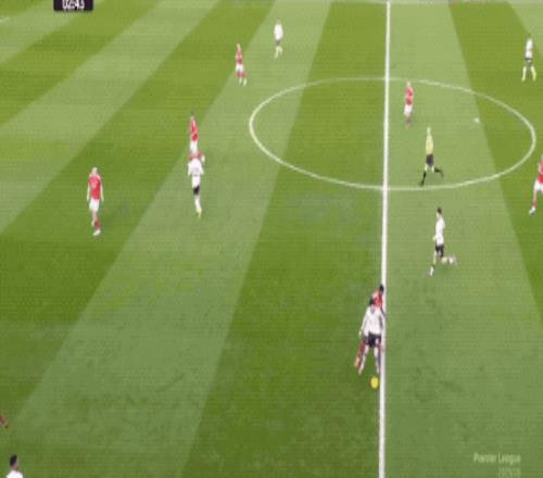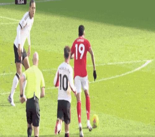 第38分鐘,哈欽森的直塞打穿利物浦的防線,熱蘇斯沒有搶先出腳,范戴克伸出一腳,完成關鍵解圍。