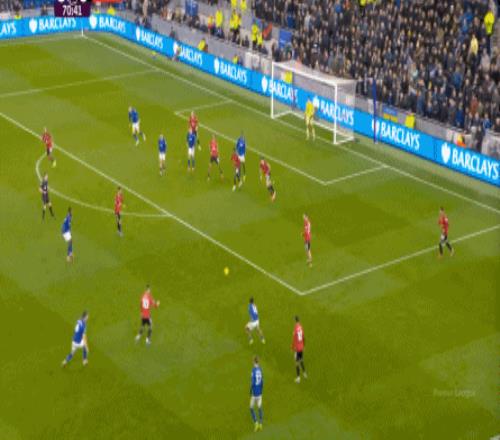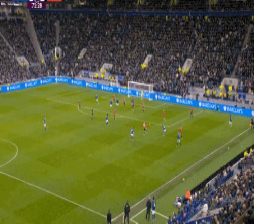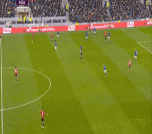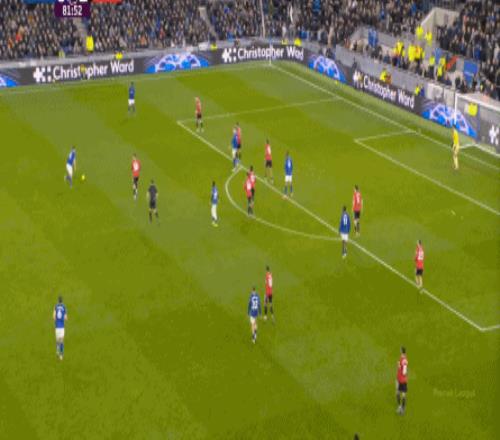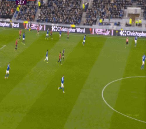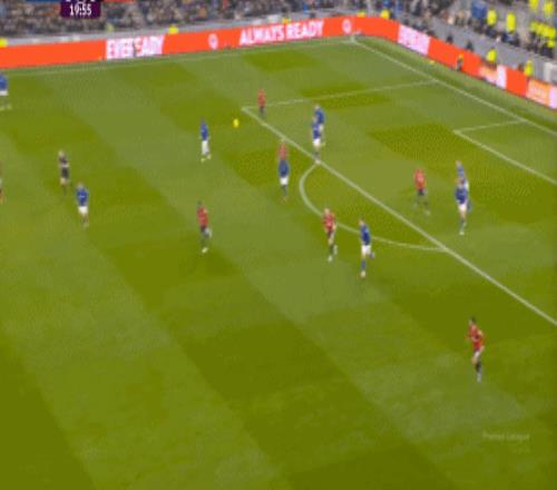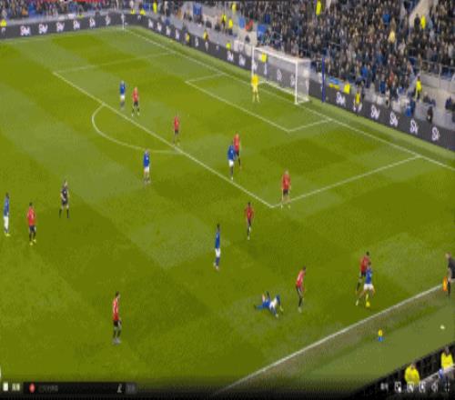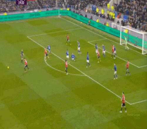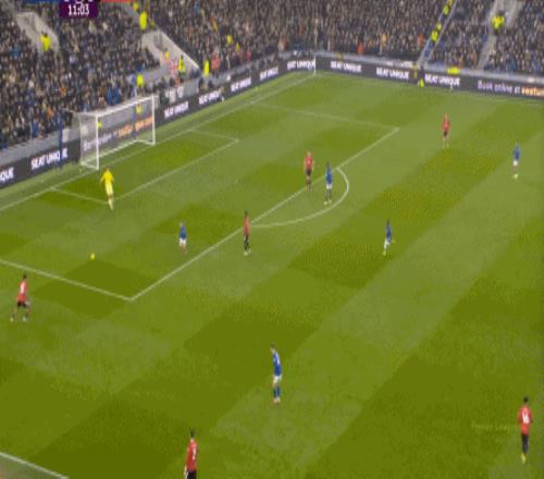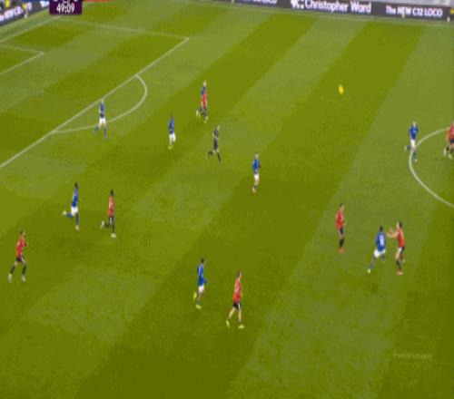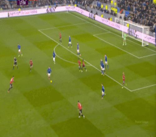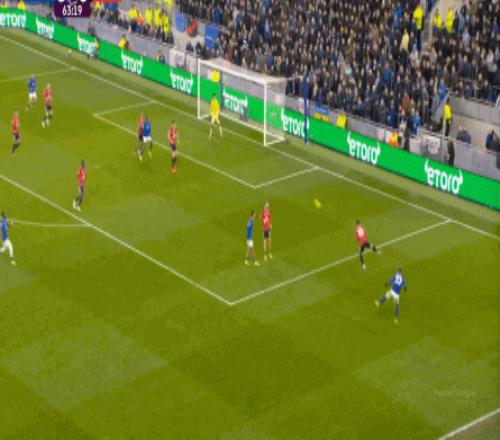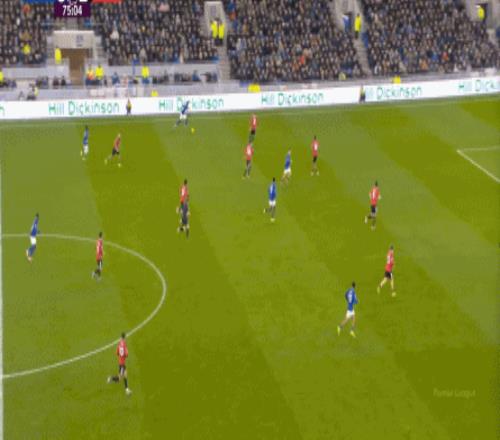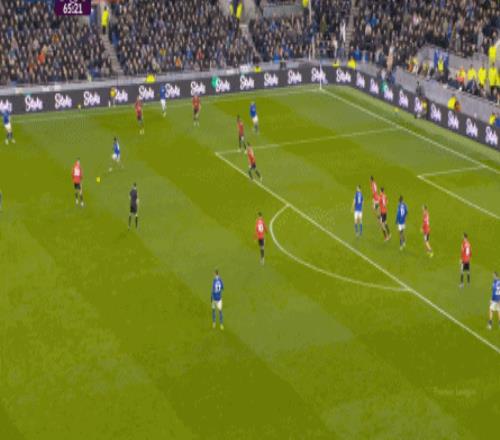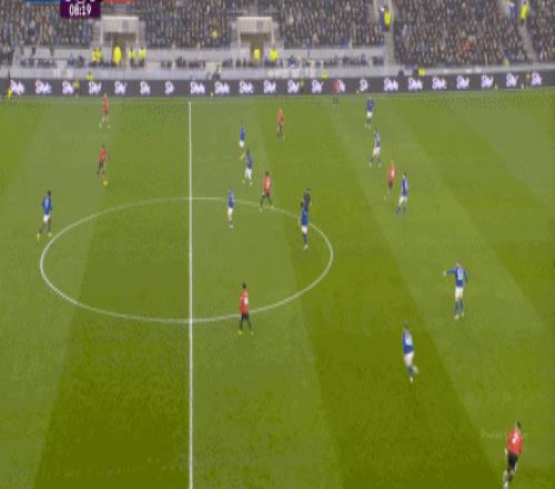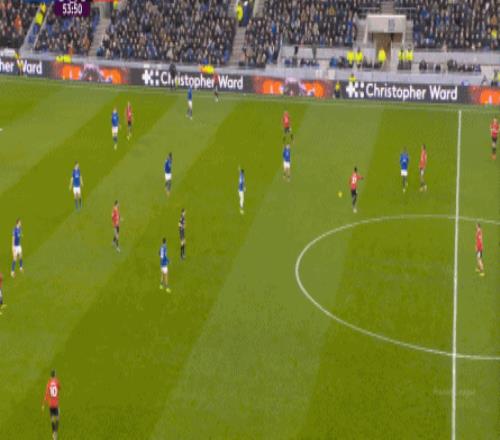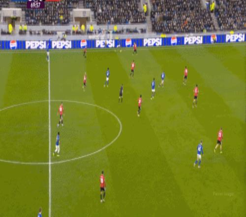 因為,從55到70分鐘,埃弗頓幾乎將曼聯壓在了半場范圍內,他們用相當長線條的方式來發展自己的進攻: