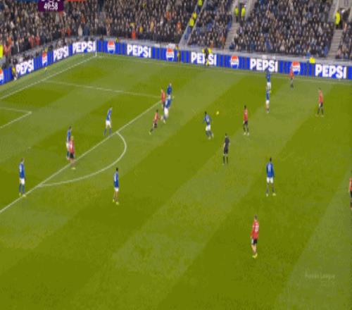 相較之下,曼聯的進攻只有這一次搶斷后的傳中打得還可以,但本質上也是先打塔可夫斯基的防守質量,再尋找延續進攻的機會:
