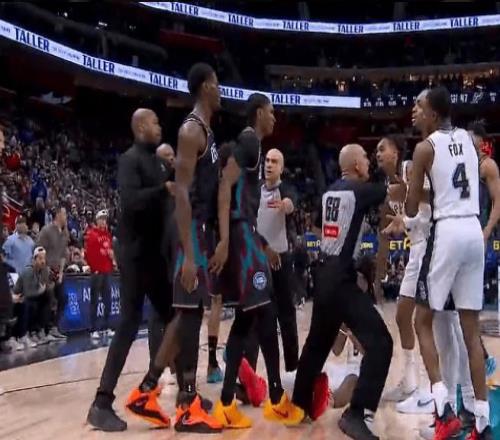 次節比賽,馬刺進攻火力升級本場首次單節得分30+,且限制活塞連續兩節單節不足30分。馬刺追到29-29,活塞一波6-0攻勢取得領先,馬刺連中三分一波9-0攻勢奪回領先。馬刺繼續維持47-45領先,坎寧安推倒卡斯爾引發沖突,凱爾登推搡坎寧安,杜倫手指凱爾登,裁判吹罰凱爾登與杜倫技術犯規。活塞一波6-1攻勢反超3分,馬刺回敬9-4攻勢,馬刺單節33-28凈勝5分,上半場結束馬刺57-55反超活塞。前兩節比賽,馬刺三分22中11,瓦塞爾5記三分18分與尚帕尼4記三分12分,文班亞馬9中2得到7+7;活塞三分18中5,坎寧安10+3+6與霍蘭11+6。