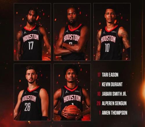 首發陣容方面,爵士隊這邊,首發五虎傷了四個,基揚特·喬治(腳踝)缺陣,凱斯勒(肩膀)、小賈倫·杰克遜(膝蓋)和努爾基奇(鼻子手術)全部賽季報銷,主帥排出的最新首發五人組為:馬爾卡寧、菲利波夫斯基、科利爾、貝利、小文斯-威廉姆斯;火箭隊這邊,范弗利特和亞當斯賽季報銷,首發陣容為:阿門-湯普森、賈巴里-史密斯、凱文-杜蘭特、塔里-伊森、阿爾佩倫-申京。