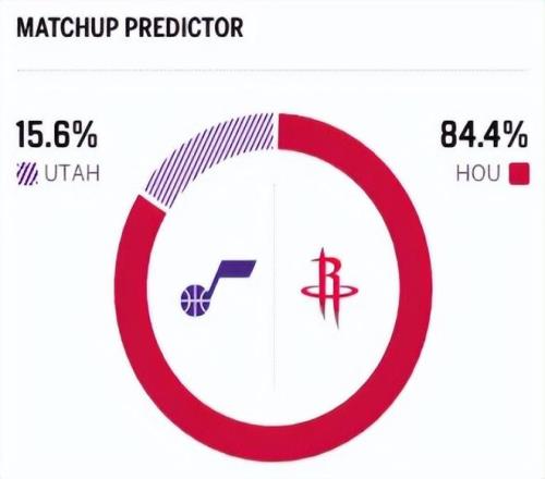 賽前,美媒ESPN對本場比賽進行了勝率預測,火箭隊勝率高達84.4%,爵士勝率則僅有15.6% ,差距還挺明顯。