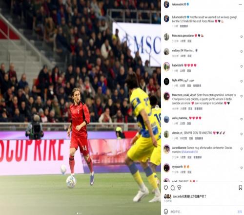 本場比賽莫德里奇首發(fā)出場打滿全場,他也在個人社媒發(fā)文鼓勵球隊寫道:“比賽結(jié)果不是我們想要的,但我們會繼續(xù)加油,最后12場都要當(dāng)做決賽對待直到最后,米蘭加油!”