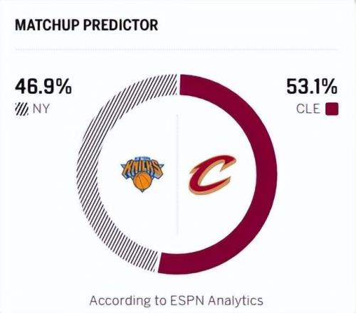北京時間2月25日,NBA常規賽迎來一場東部的焦點對決,騎士在主場迎接尼克斯的挑戰,此戰不僅是全美直播,更是東部第三的卡位戰!騎士賽前戰績36勝22負位列東部第四,尼克斯37勝21負位列東部第三!騎士近期狀態不俗,近14戰拿下12場勝利,值得一提的是,哈登加盟后,騎士戰績5勝1負,期間,哈登場均數據為18.7分5籃板8.7助攻,3分命中率高達47.1%,個人勝利貢獻值隊內第一,整體來說,哈登的加入帶來騎士急需的組織能力,以及關鍵球能力,分擔米切爾的持球壓力!尼克斯這邊,陣容深度出色,攻守體系已非常完善,不過近期布倫森狀態一般,騎士有望借助主場優勢拿下這場勝利。賽前,ESPN預測本場比賽的結果,騎士勝率53.1%,尼克斯勝率46.9%。