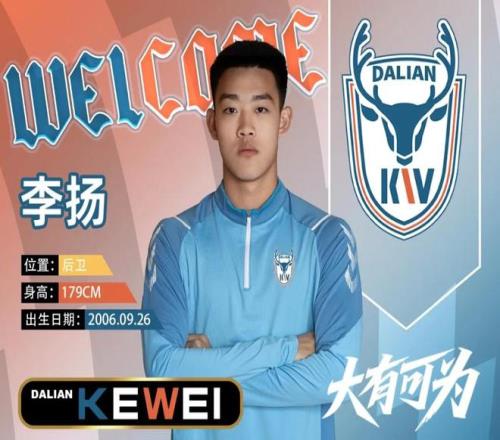 北京時間2月25日,大連可為官方宣布,19歲后衛李揚加盟俱樂部。球員出自恒大足校。