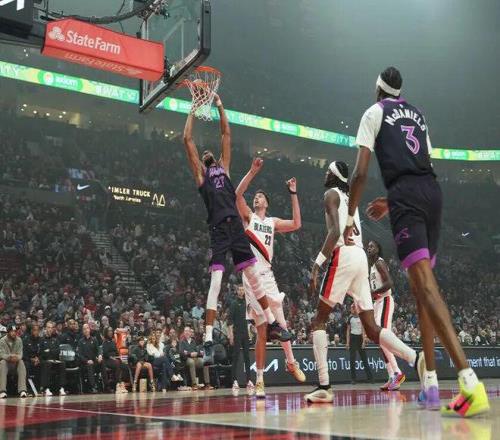 森林狼贏開拓者這場,最后簡直有點喜劇了: